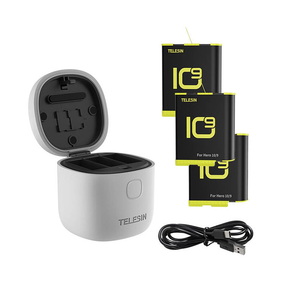 Telesin GP-BTR-905-GY – Vedenpitävä latausasema GoPro Hero 9/10 + 3 akkua, TF-kortinlukija