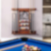 Seinään kiinnitettävä teline 8 biljardikepille ja 15 pallolle